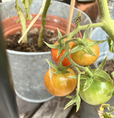 Egna tomater som börjar få färg