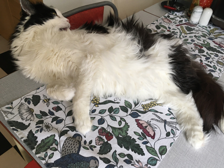 Lucifer tvättar sig på köksbordet