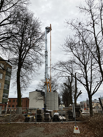 Pålningsmaskinen vid tunnelbygget St Olofsgatan juldagen