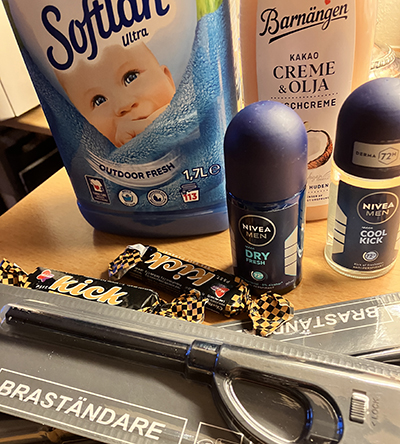 Påfyllning av hygienvaror mest. (Allt är inte med på bild.)