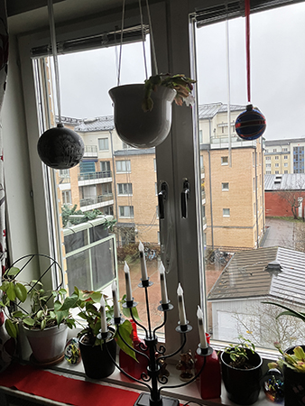 Uppsalakulan och Union Jackkulan i vardagsrumsfönstret