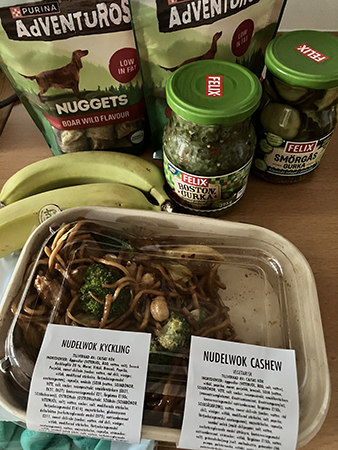 Woklåda gurka bananer o vildsvinsgodis till Baldur