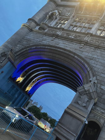 Tower bridge räcke och kvällshimmel