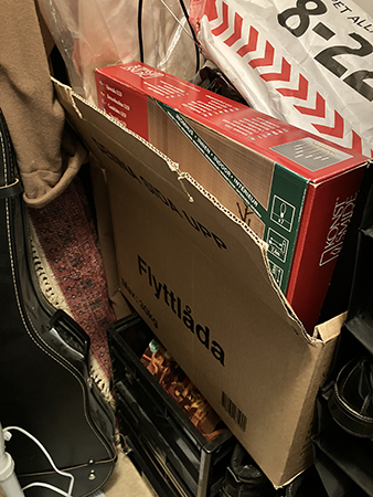Adventsstakar o -stjärnor i låda i klädkammaren
