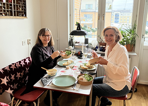 Birgitta och Gunilla vid lunchbordet.