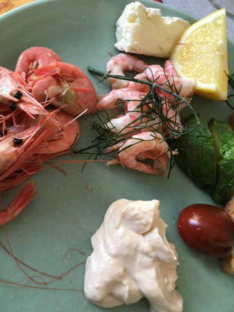 Färska räkor med chiliaioli citron dill tomat avokado citron
