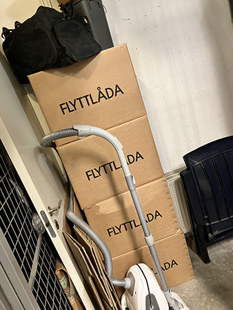 Flyttlådor med papper, tidskrifter och skolböcker…