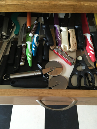 Före detta kryddlådan blev kniv- och saxlåda.