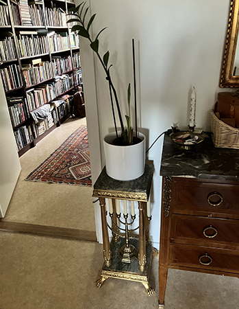 …och garderobsblomman hittade upp på piedestalen i hallen.