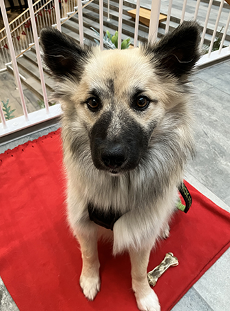 Baldur lägger huvudet på sned o tittar på vänstra ficka