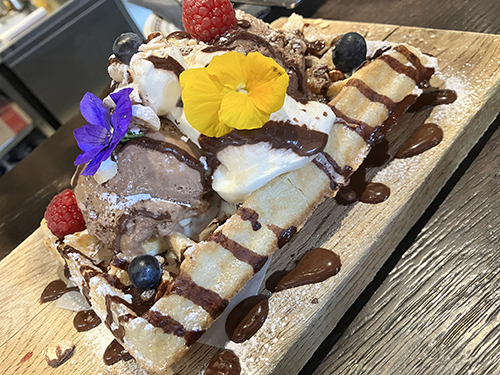 Belgisk våffla med ätbara blommor från Nina på Bierhuis