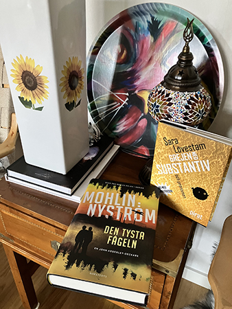 …och bokbyte från nyutkommen svensk deckare till svensk grammatik.
