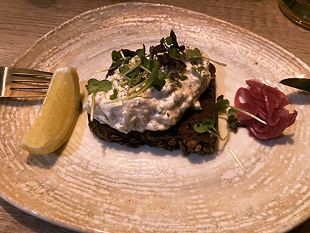 Förrätt skagenröra och lax Brasseri Kanalparken