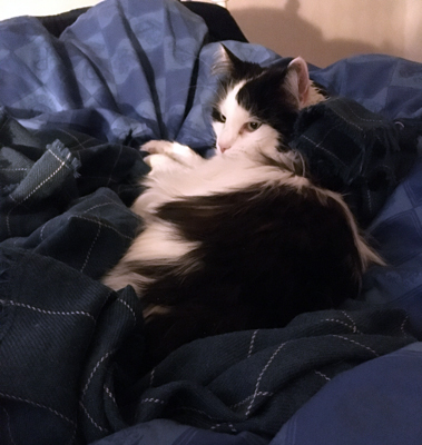 Bokuppslag kattbokmärke och kaffe i Förfadernmugg