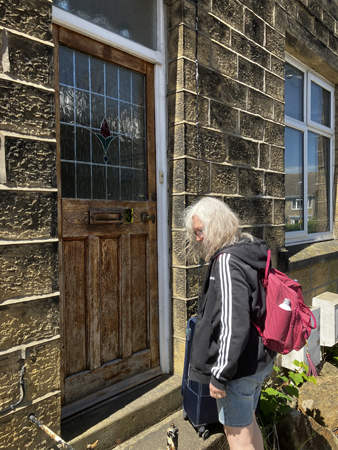 Anna framme hos Annas snälla dotter o Boy Wonders ytterdörr