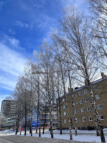 Kran bakom björkallén St Olofsgatan