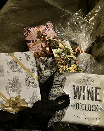 Presenter fr Anna och Annas snälla mamma mugg vin Muro Primitivo servetter choklad trisslotter