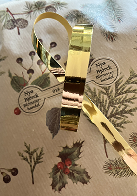 Blompaket med guldsnöre från Nya Björck Blomsterhandel