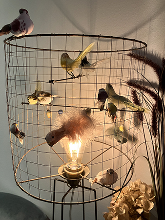 Icke ätbara fåglar i en lampskärm.