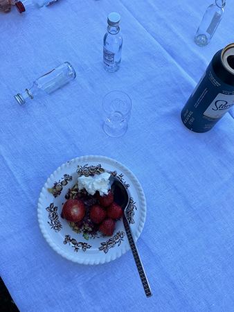 Jordgubbar och glass och ikullvälta snapsflaskor