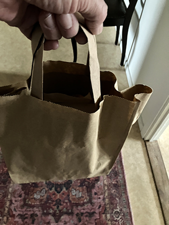En papperspåse i handen
