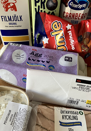 Fil Pro Viva tranbärsdryck Dumlekolor ägg kalkon kyckliong potatissallad