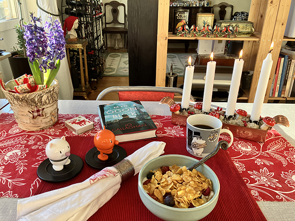 Fjärde advent vid frukostbordet med Hopptisar På ett ögonblic o hyacint