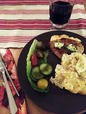 Kycklingfilé med vitlökssmör grönsaker potatisgratäng Amarone i glaset