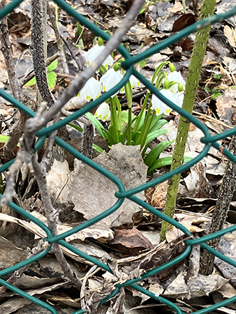 Snödroppar bakom stängsel