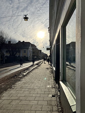Soligt på Svartbäcksgatan i morse.